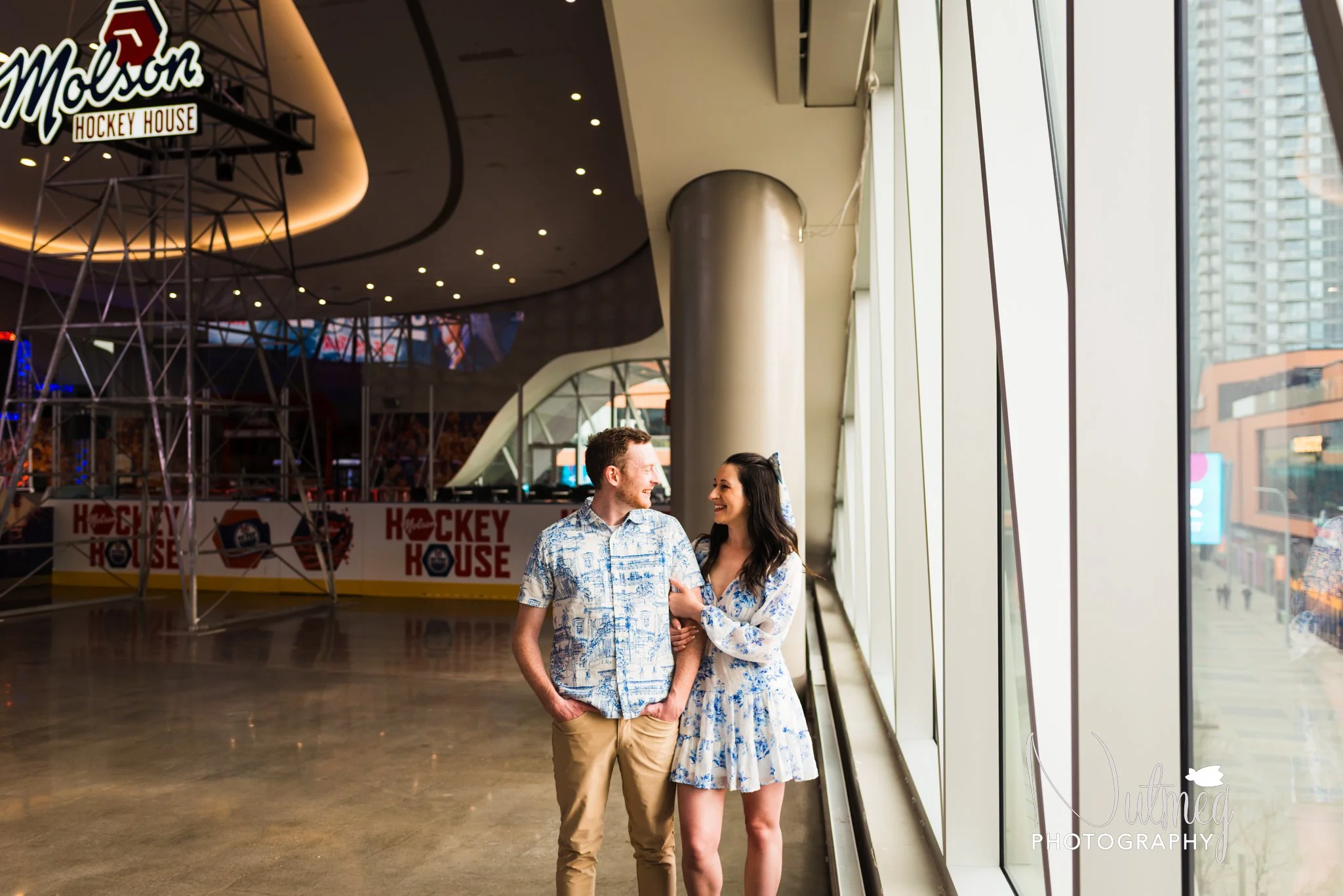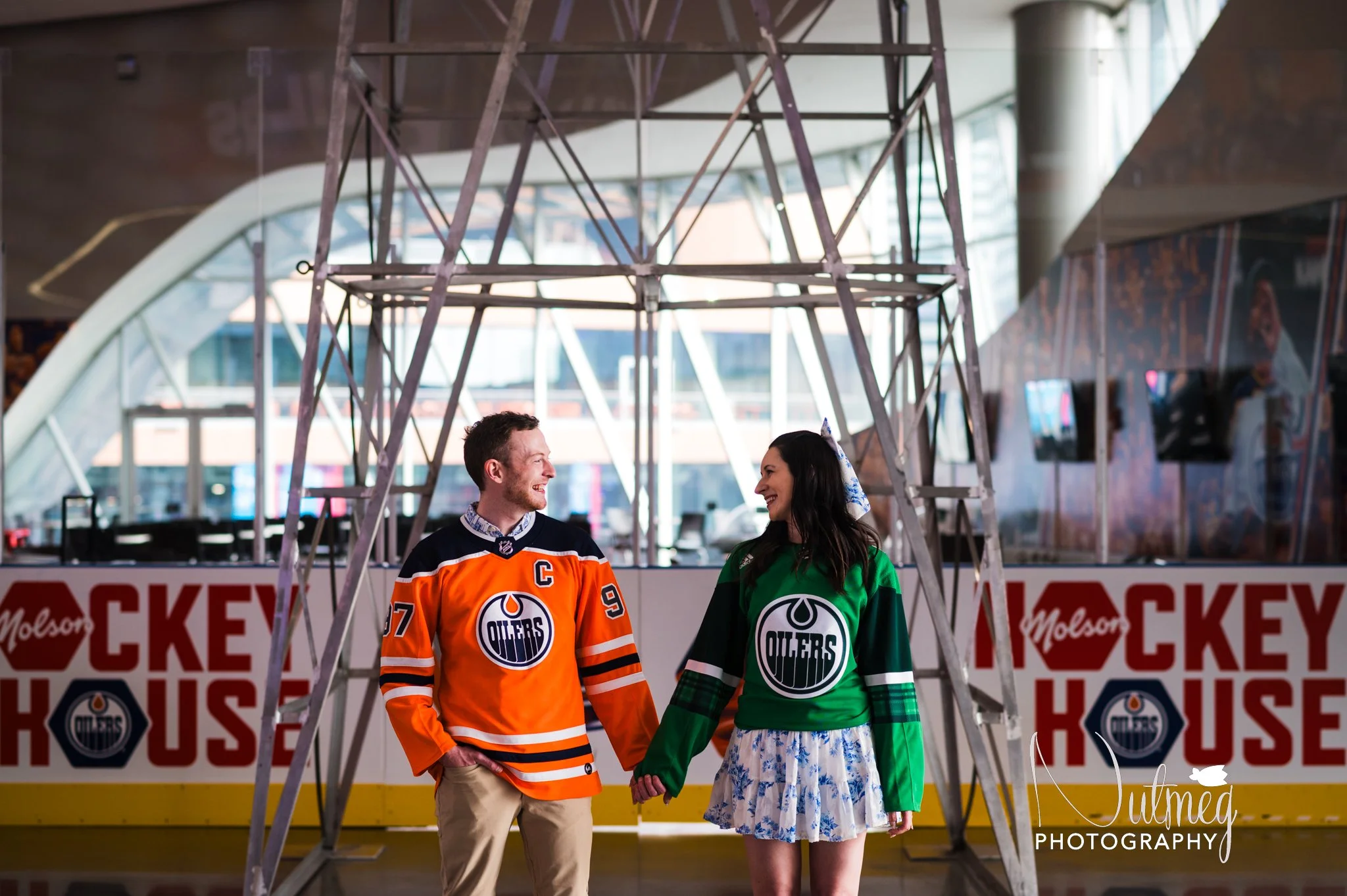 It’s always fun to do a themed engagement session centered around what the couple loves! In this case it was the Oilers! We did their session in Rogers place and the area surrounding it.